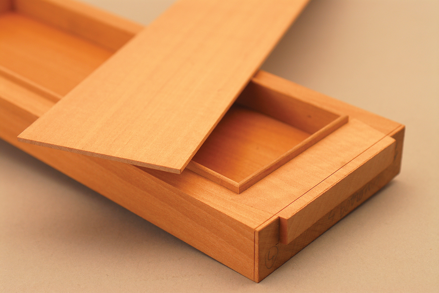 See the sawn details. Above is shown a sample of thin solid veneer. In this case it has been used for a small box lining in one of my student’s work.