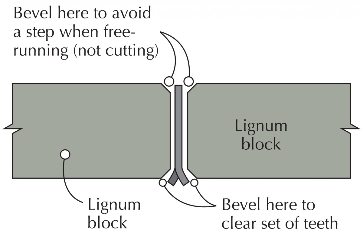 What’s more, feed direction can change in the twinkling of an eye if the blade’s set on one side of the blade should be blunted by mineral inclusions in the wood. This is one of the reasons why the point fence (more on that in a moment) is so useful. The operator is in control of feed direction and can adjust it as necessary. (You may have noticed that badly set handsaws that have more set on one side than the other cut a curved line).
