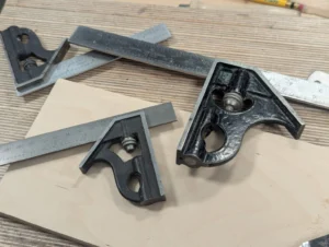 My bench inevitably has three squares close to hand, even though I could manage with just the one. Two of them are six-inch Starretts, any Starrett takes some beating, and my one old one was brand new in the box when I bought it in 1965. One of the Starretts was bought and given to me by a student in a New York, in a hands-on class in 2013; otherwise I would have just stuck with the two. My twelve-inch Rabone Chesterman has remained square and accurate throughout my sixty plus years of daily use. I doubt that many squares have seen more use than this one, and considering a knifewall pulled against the beam every few minutes throughout any given day, it’s a remarkable thing to know how well it has served me in my woodworking.